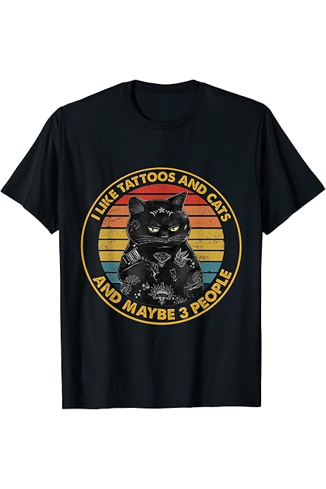 Amazon Com I Like Tattoos And Cats And Maybe 3 People Cat Tattooed T Shirt Clothing Shoes Jewelry